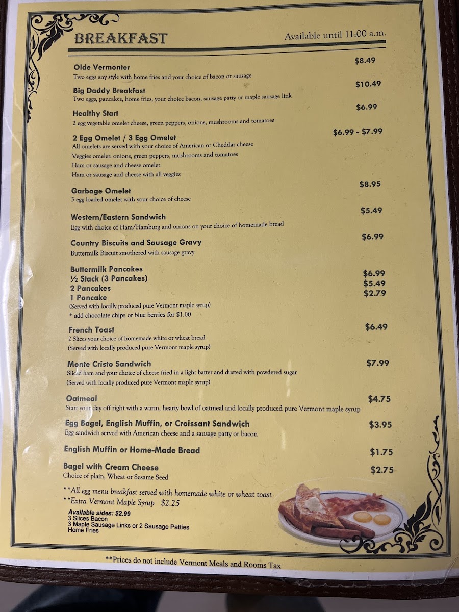 2 Slices your choice of homemade white or wheat bread (Served with locally produced pure Vermont maple syrup)