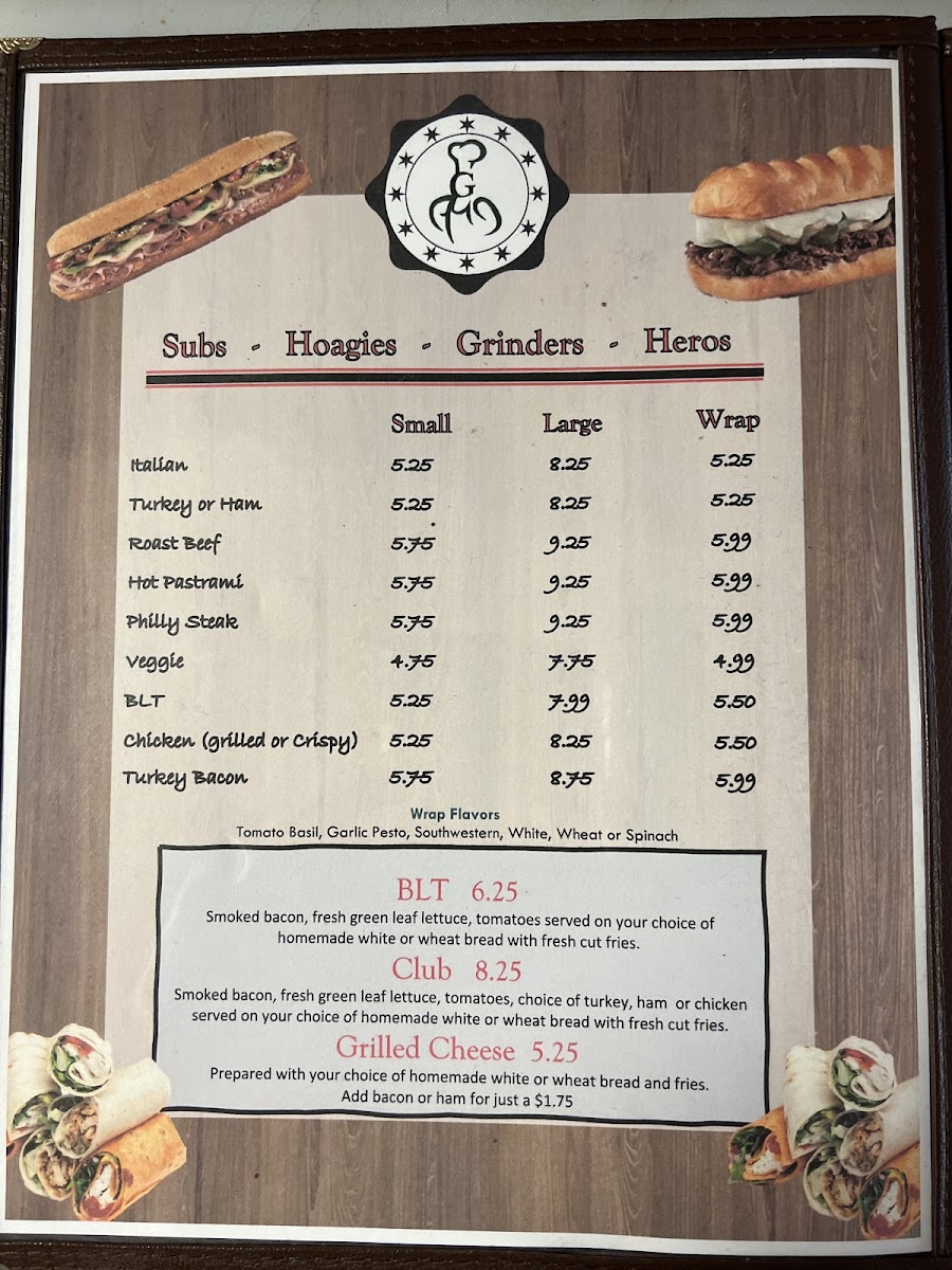 Deli style ham, maple ham or capicola on your choice of a rustic white or wheat sub roll, choice of cheese and vegies.
